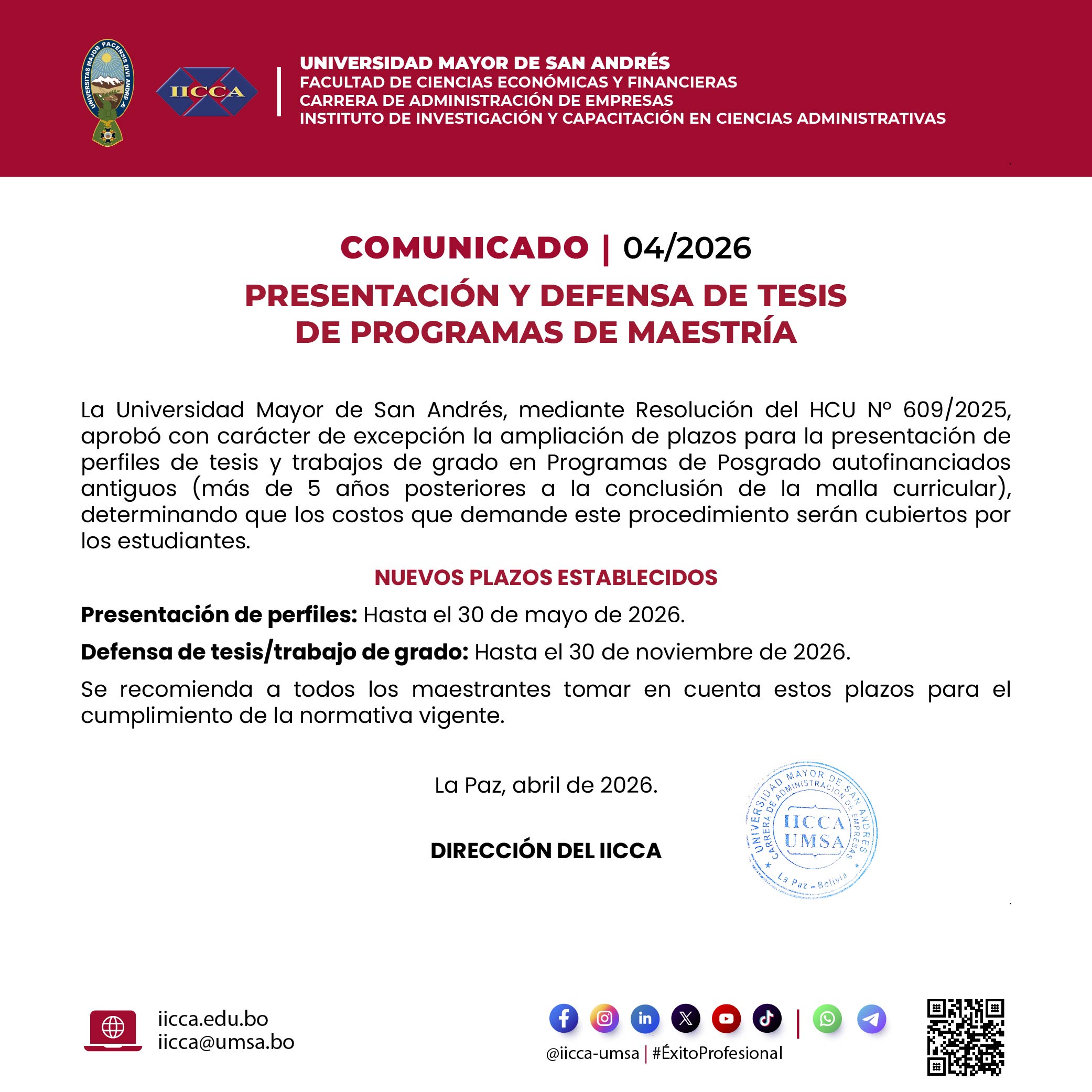 Maestría Maestría en Gestión Financiera Horarios: Jueves, viernes de 19:30 a 22:00 y sábados de 08:30 a 13:30 hrs. Inicio: 10 de Abril del 2025 Colegiatura: Bs 28 000 Matricula: Bs 1260